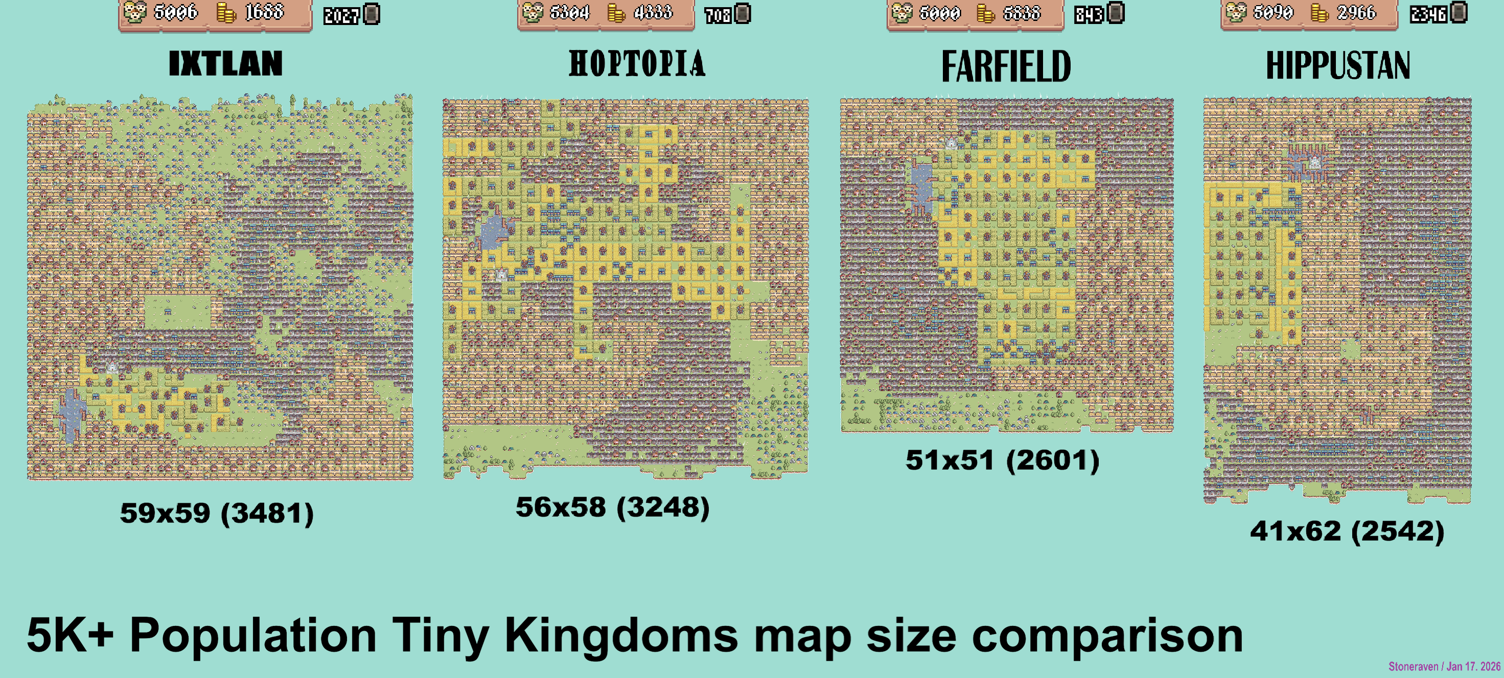 A player is not free with his map making choices, if going to aim also to a maximally populous kingdom. And, They are not that tiny in practice btw, most of play time goes to long lags and to scrolling around a map.