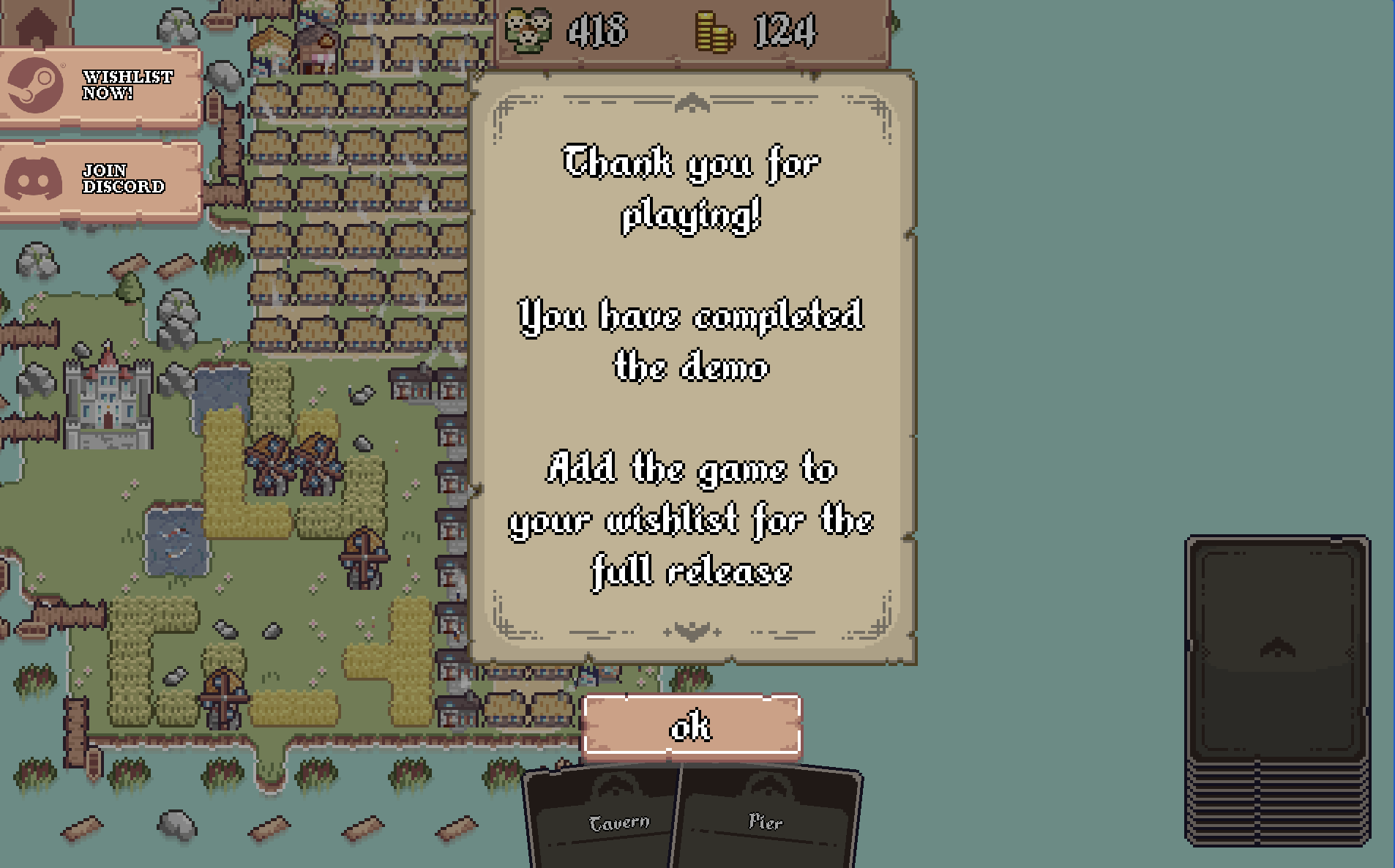 Only thing I can criticize is that sometimes you just lose to bad RNG. Too many piers early game leaves you with no money for draw, I feel like fields should be slightly more abundant when placing down houses.