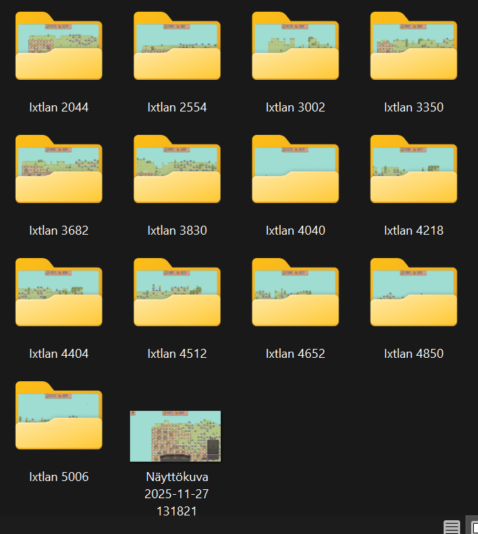 In theory I could draw every map from taken screenshots since population 2044 and make an animated GIF from those maps to see how Ixtlan grew, but that'd be absolutely insane amount of work to do...